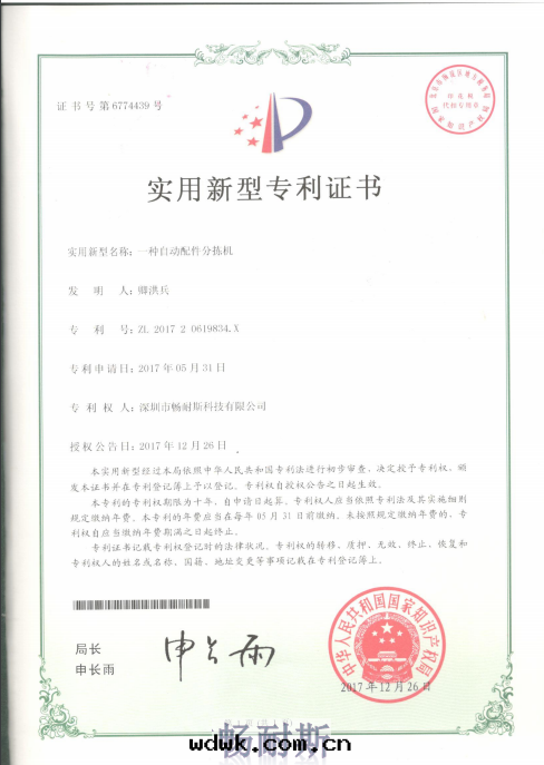2017年(nián)專利:一種(zhǒng)自(zì)動(dòng)配件(jiàn)分(fēn)揀機(jī)